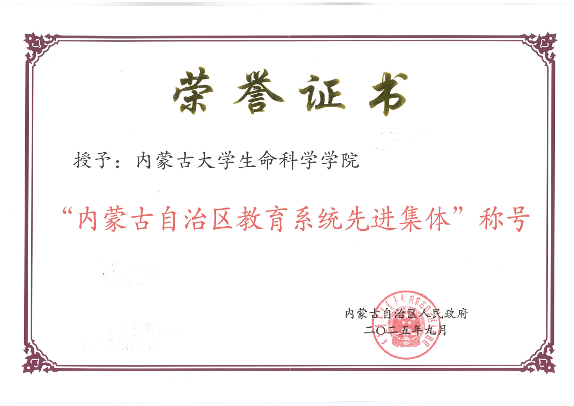 我院荣获“内蒙古自治区教育系统先进集体”称号。