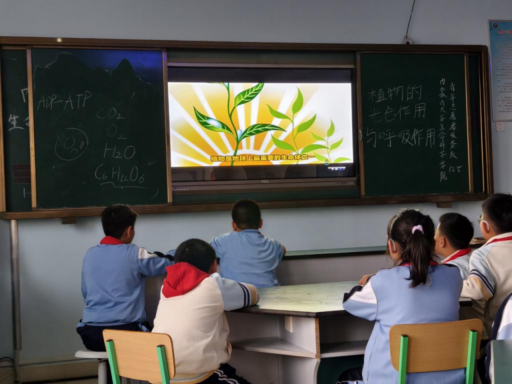 随后,志愿者们将课堂带入了植物的微观世界——光合作用与呼吸作用。通过有趣的动画演示,让小学生们都了解了植物在白天和夜晚进行呼吸作用的过程。孩子们在互动环节中积极提问,对植物这种独特的生存方式充满了兴趣。